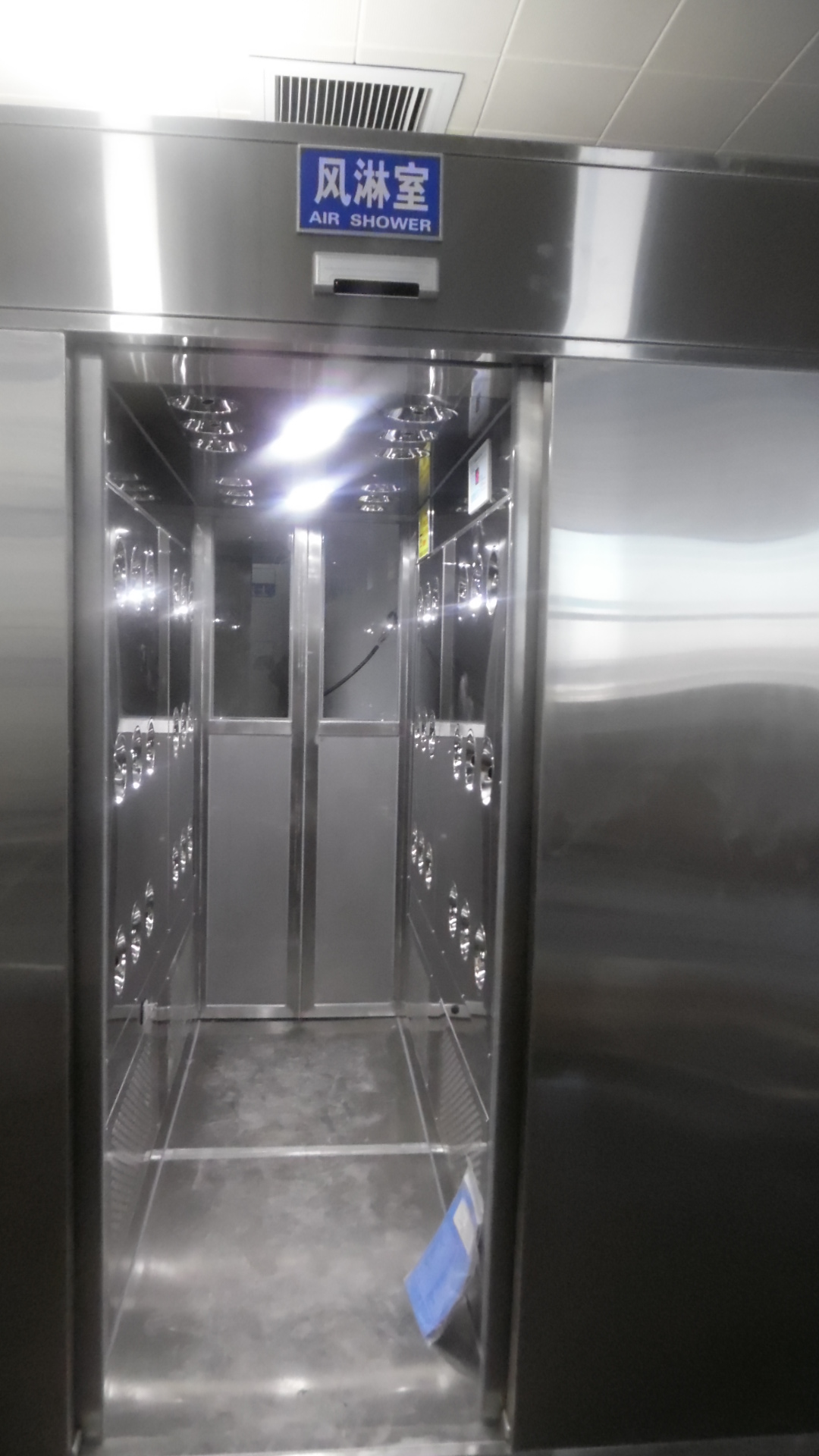 3.拉開不銹鋼風淋門人員進入風淋門后,風淋門立即自動關閉外門,紅外線感應,風淋自動啟動,吹淋15秒。