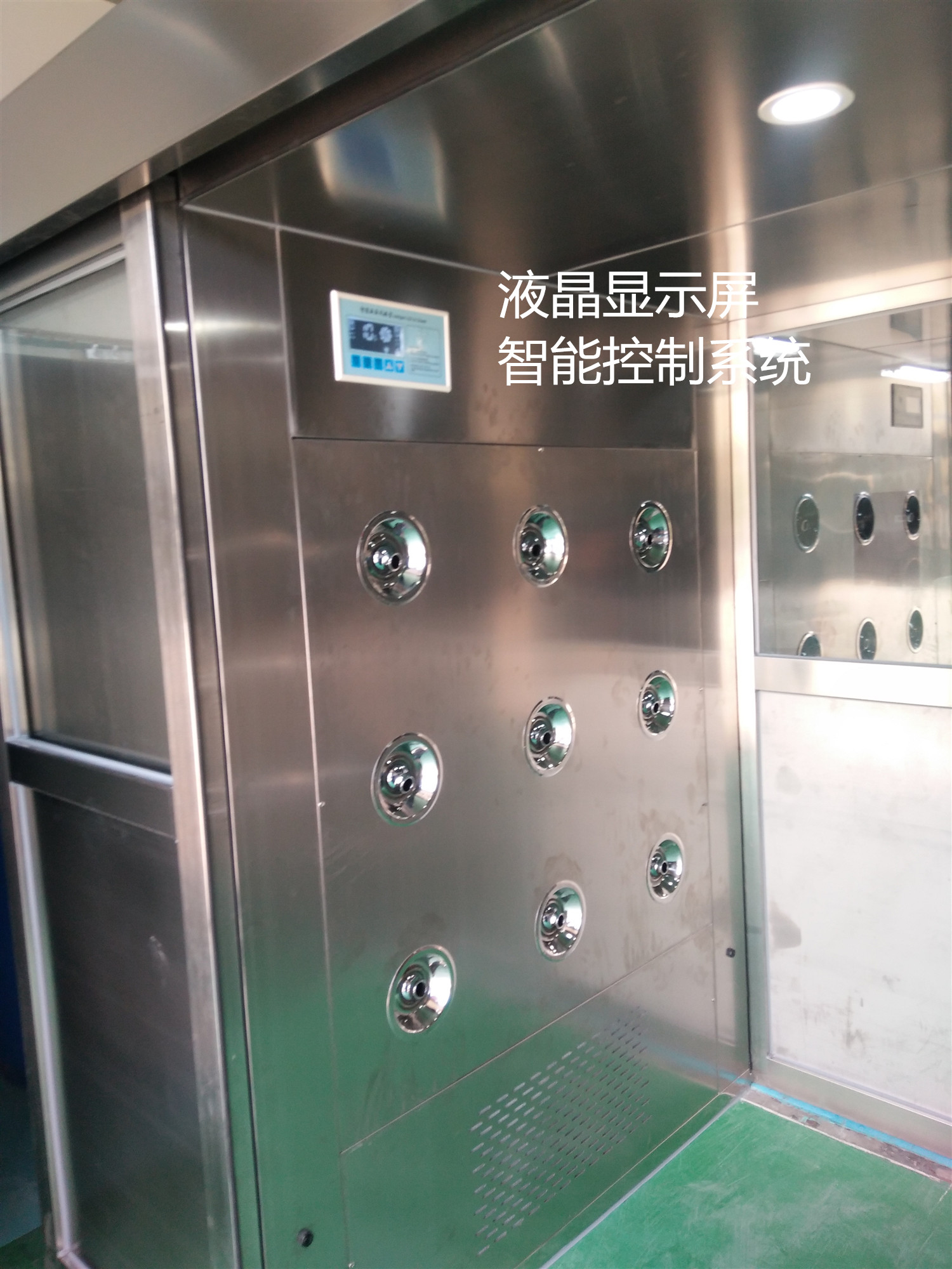 2、風淋按鍵:在內外門關閉后,按下手動按鍵,系統即轉入風淋過程。此按鍵主要用于門磁、紅外失靈或風機維護檢修時。