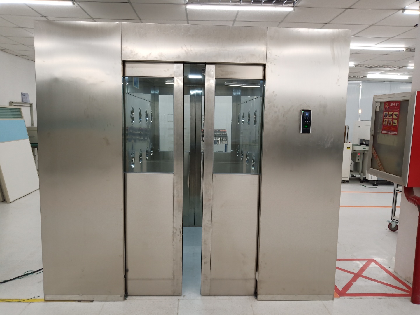 根據(jù)運行程序的設置,指示燈將通過紅燈或綠燈給予工作人員風淋流程的指示。