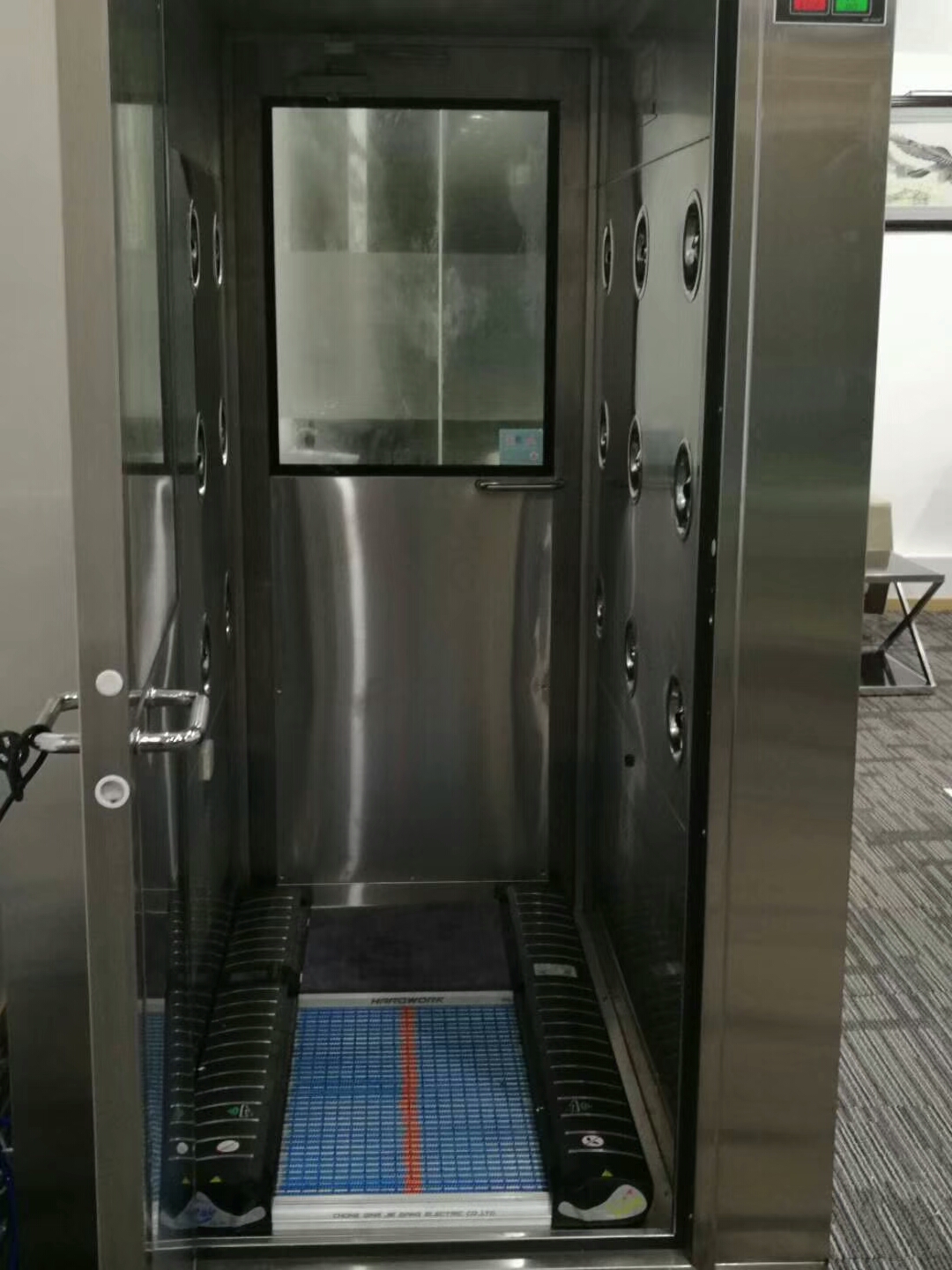 貨淋室:鞋底清潔風淋室(風淋通道)的凈化效果: